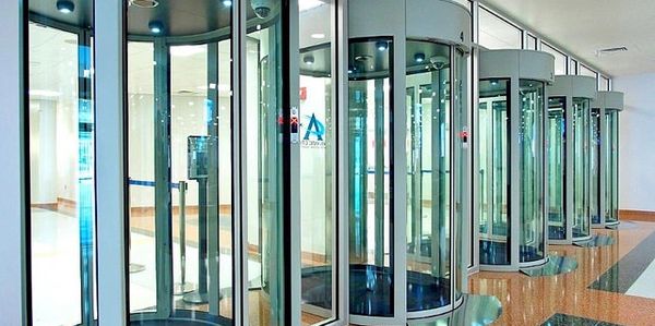 We offer 3 types of security doors : The ClearLock series, which has a rounded design with curved sliding doors. The Interlock series, which has a rectangular design and finally the RevLock, which is a four obstacles revolving door.